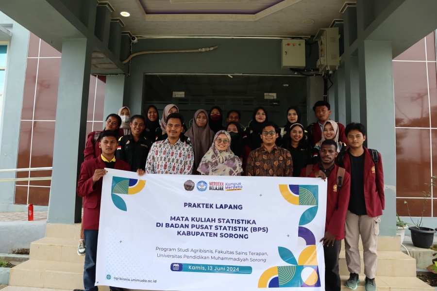 Sorong- Mahasiswa dan Dosen pembimbing ibu Aldilla Mawanti Athirah M., Si dari Universitas pendidikan Muhammdiyah Sorong (UNIMUDA) Program Studi Agribisnis melakukan kunjungan akademik ke Badan Pusat Statistik (BPS) Kabupaten Sorong dalam rangka memperdalam Pemahaman Mata Kuliah Statistika. Kunjungan ini bertujuan untuk mengetahui proses Mekanisme Statistika mulai dari Teknik pengambilan Sampling Menggunakan Teknik non- Probability Sampling dan Probability Samples , Pengumpulan data , Pengolahan data, dan diseminasi data. Kunjungan ini lakukan pada hari Kamis (13/06/2024) di kantor Badan Pusat Statistik Kabupaten Sorong